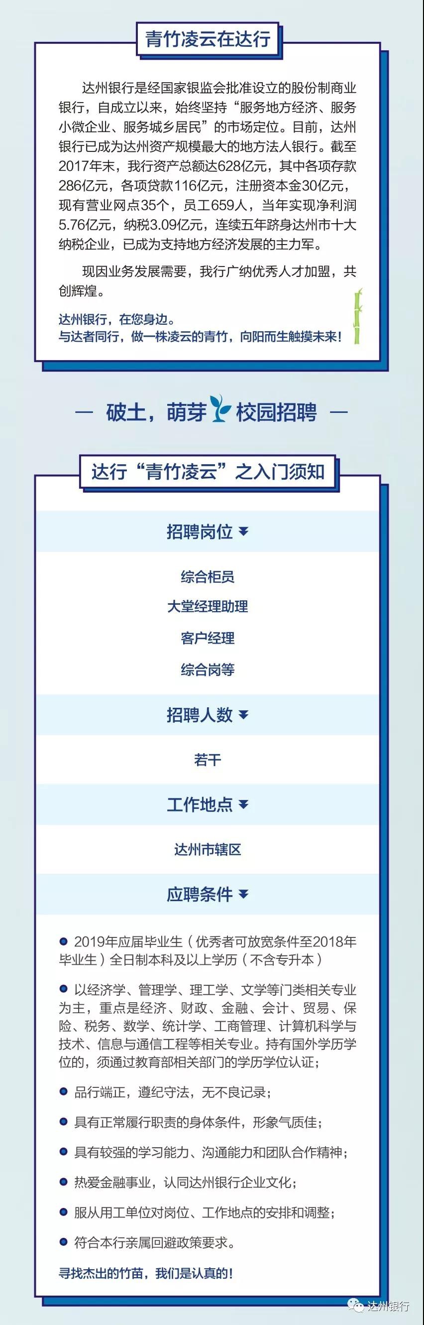 2018達(dá)州銀行招聘人才