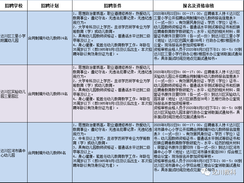 招聘信息綜合自達(dá)川區(qū)三里小學(xué)、達(dá)川區(qū)實(shí)驗幼兒園、河市鎮(zhèn)中心小學(xué)
